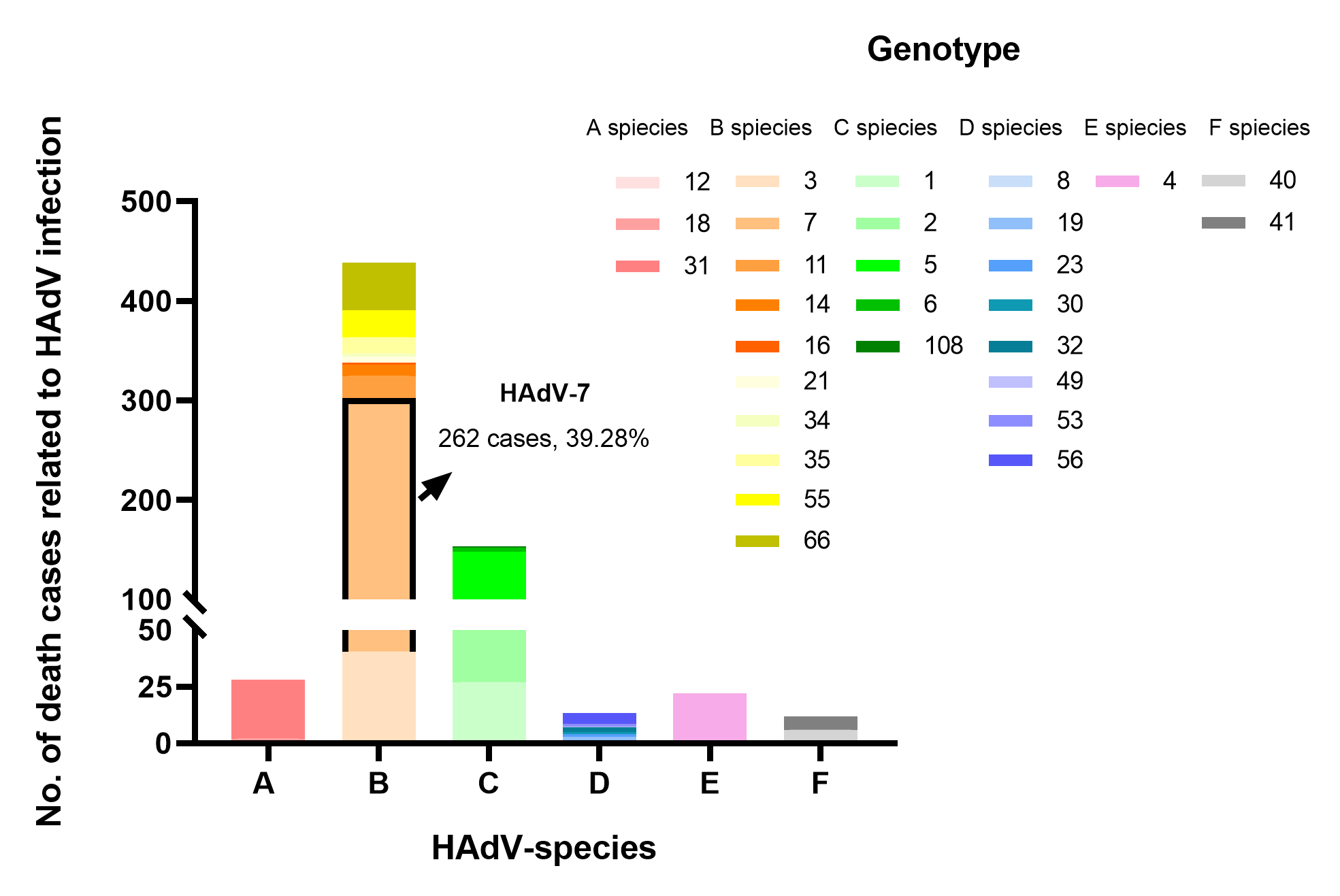 Figure 2. 不同 HAdV 型别感染致死人数分布情况